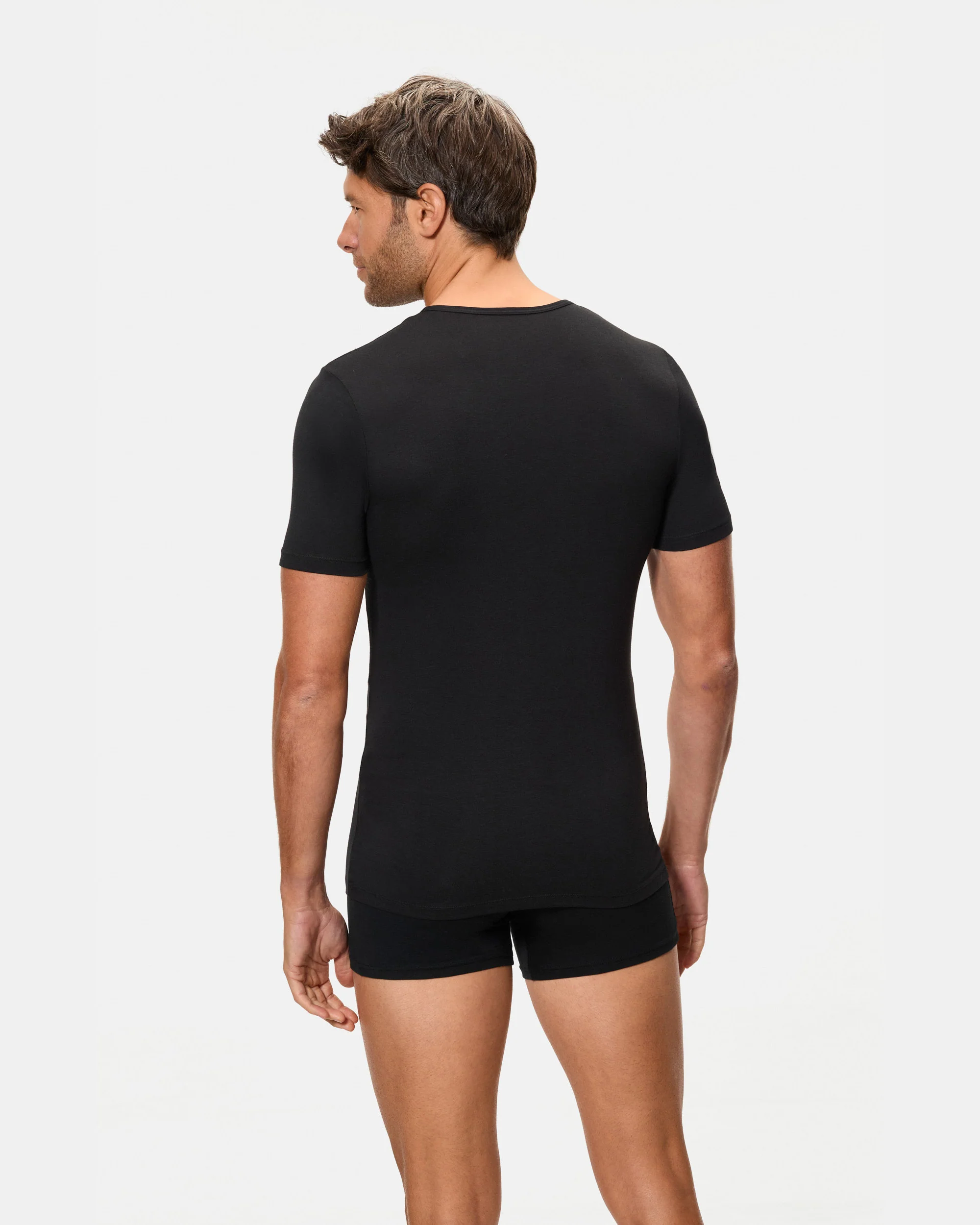 Camiseta térmica negra de manga corta para hombre, equipada con tecnología Termaltech que genera y retiene el calor en su interior. El tejido fino y ligero proporciona una calidez eficaz sin volumen extra, garantizando comodidad durante todo el día. Ideal para usar como prenda interior, ya que no molesta bajo la ropa. Recomendada para el frío extremo y actividades al aire libre, como motociclismo, ciclismo y deportes en invierno